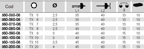 - Mărimi incluse: TX5, TX6, TX7, TX8, TX9, TX10, TX15, TX20